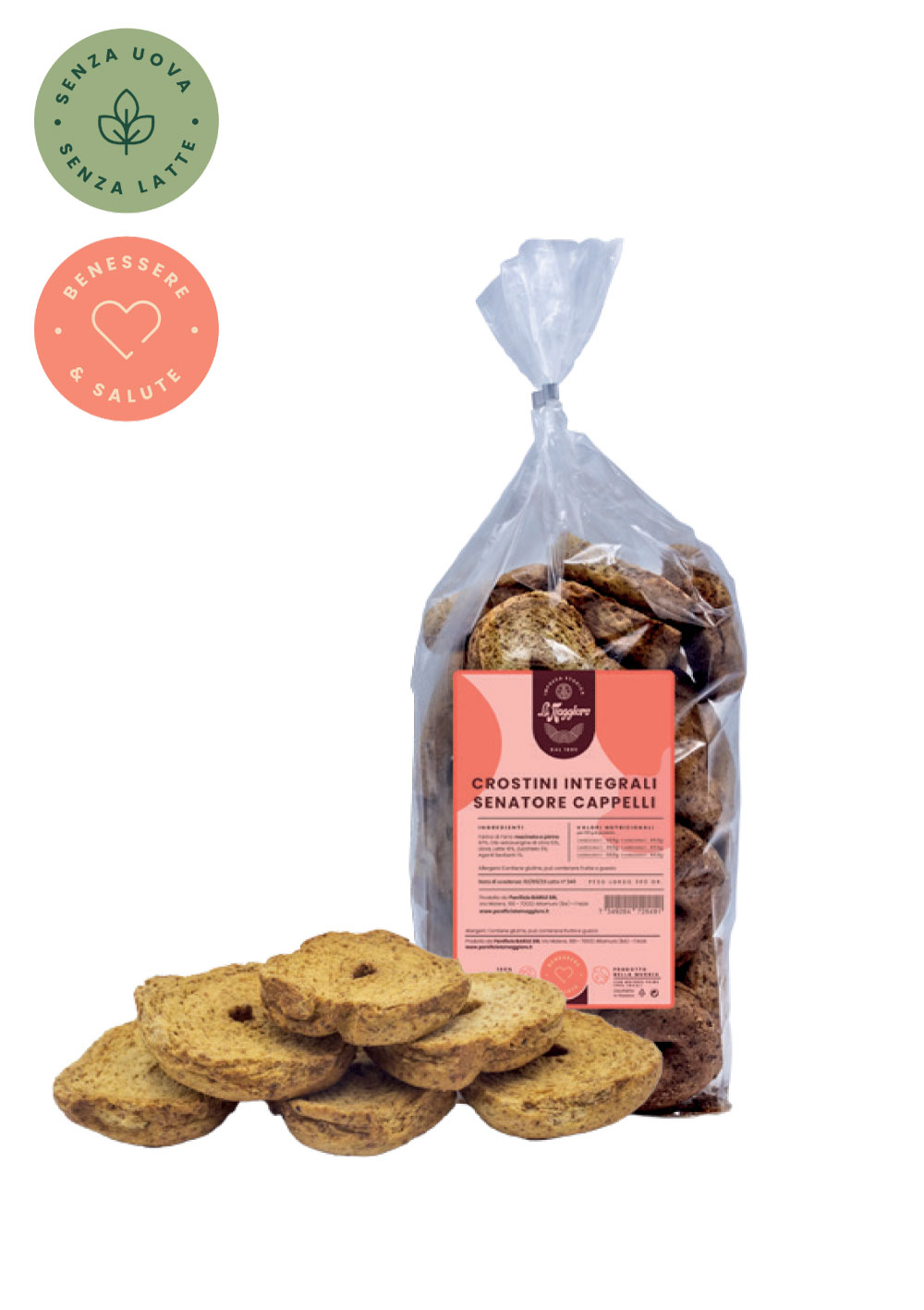 L’armonia dei sapori caratterizza la nostra linea di crostini, realizzati in modo semplice e genuino con una selezione di farine pregiate, tra cui integrale, grano duro e farro. Con la loro caratteristica forma, ogni crostino è un piccolo capolavoro di gusto, un’esplosione di croccantezza e fragranza. Che siano conditi con delicati aromi o lasciati al naturale, la loro versatilità li rende perfetti per ogni occasione: ci viene naturale essere semplici.